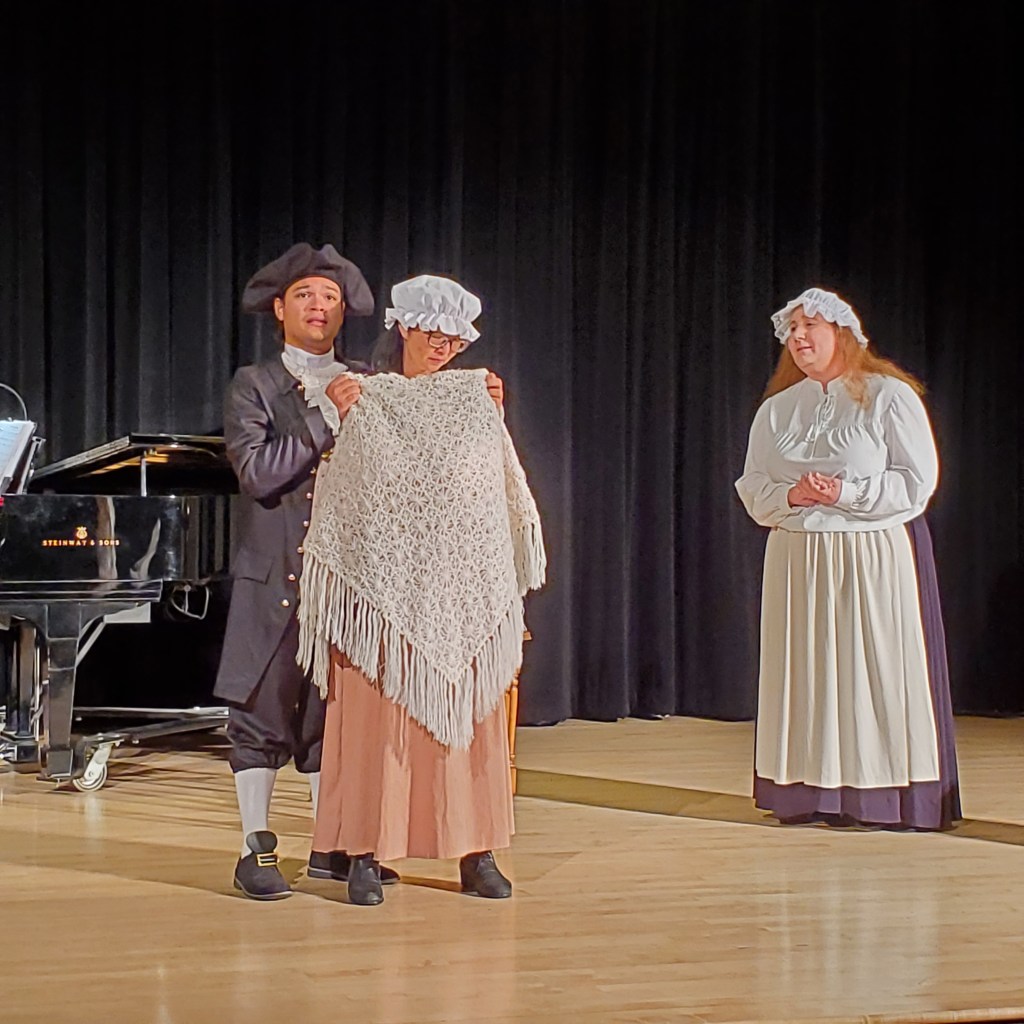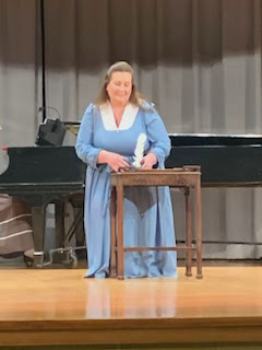 So You Asked Me (Maggie)-Mail Order MaggieNow I Don’t Have to Face Life All Alone (Maggie & Henry)-Mail Order MaggieSomebody Loves Me (Penny & Harold)-The Dance TeacherThe Whirling of My Skirts (Esmeralda)-Hunchback of Notre DameGod Don’t Leave in My Torment (Dom Claude)-Hunchback of Notre DameI’m So Ugly (Will)-Robin HoodI’m So Ugly (Geraldine)-Hunchback of Notre DameWhen Shall We Find Rest (Anne)-Anne HutchinsonWhen Shall We Find Rest (Reprise-Ensemble)-Anne HutchinsonEveryone Loves a Glad Wedding Day (Finale-Ensemble)-Pride & Prejudice